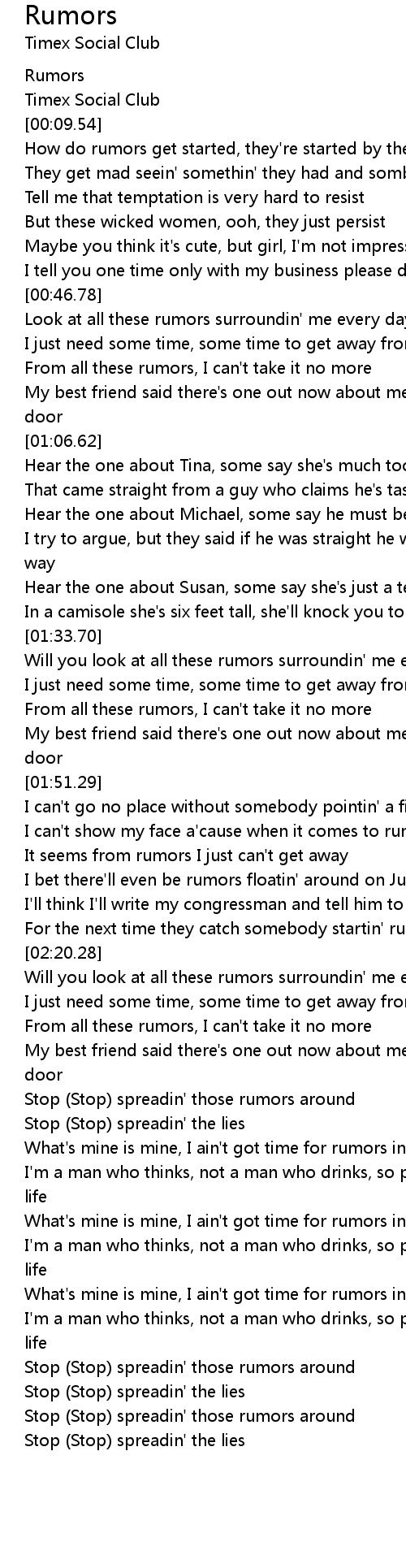 From all these rumors, I can't take it no more |