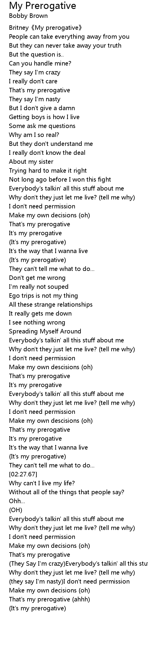 | [02:22.26] | (It's my prerogative) |