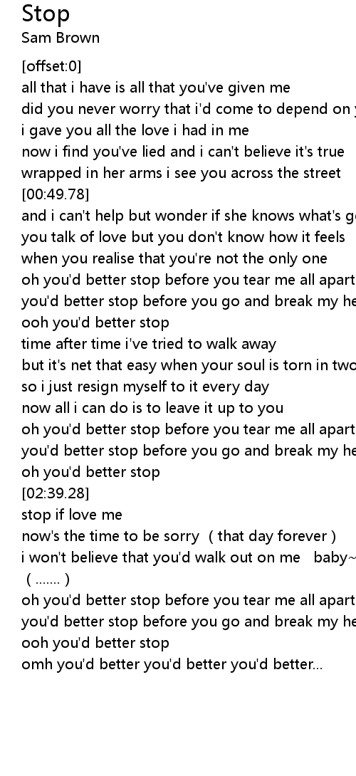 | [02:34.30] | oh you' d better stop |