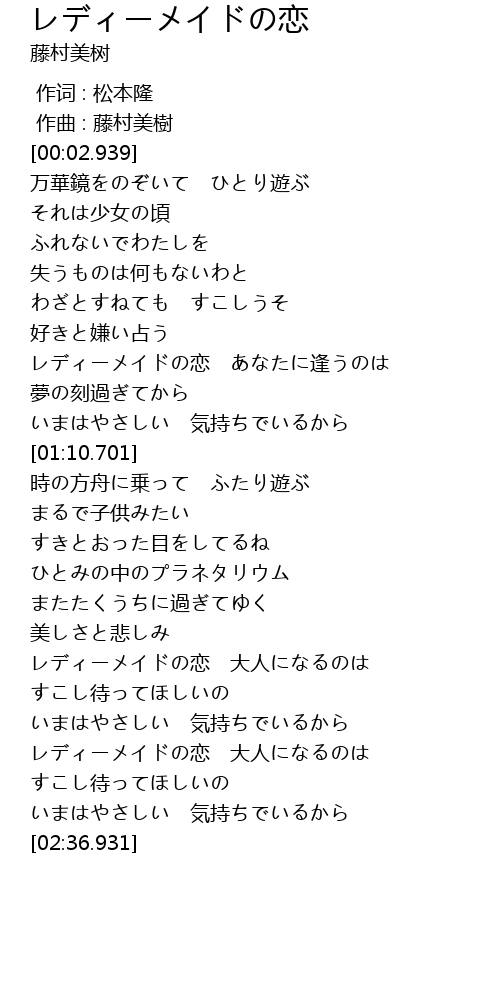 | [02:16.294] | レディーメイドの恋 大人になるのは |