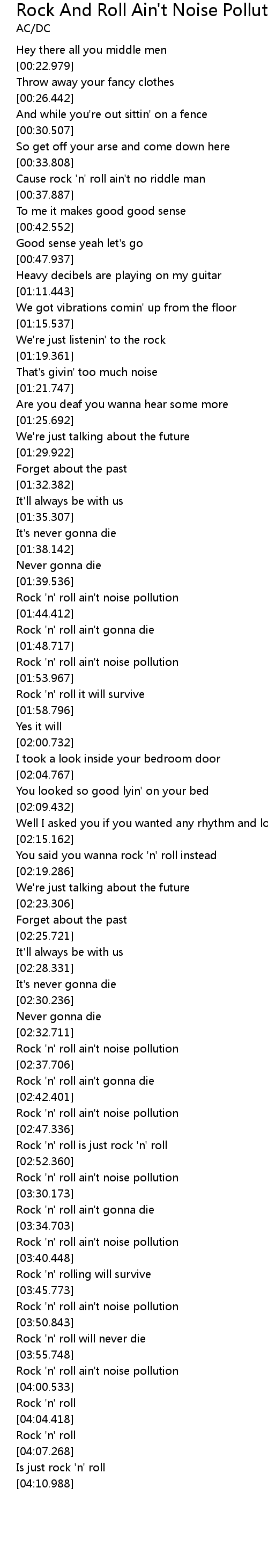 [03:23.633] Rock 'n' roll ain't noise pollution