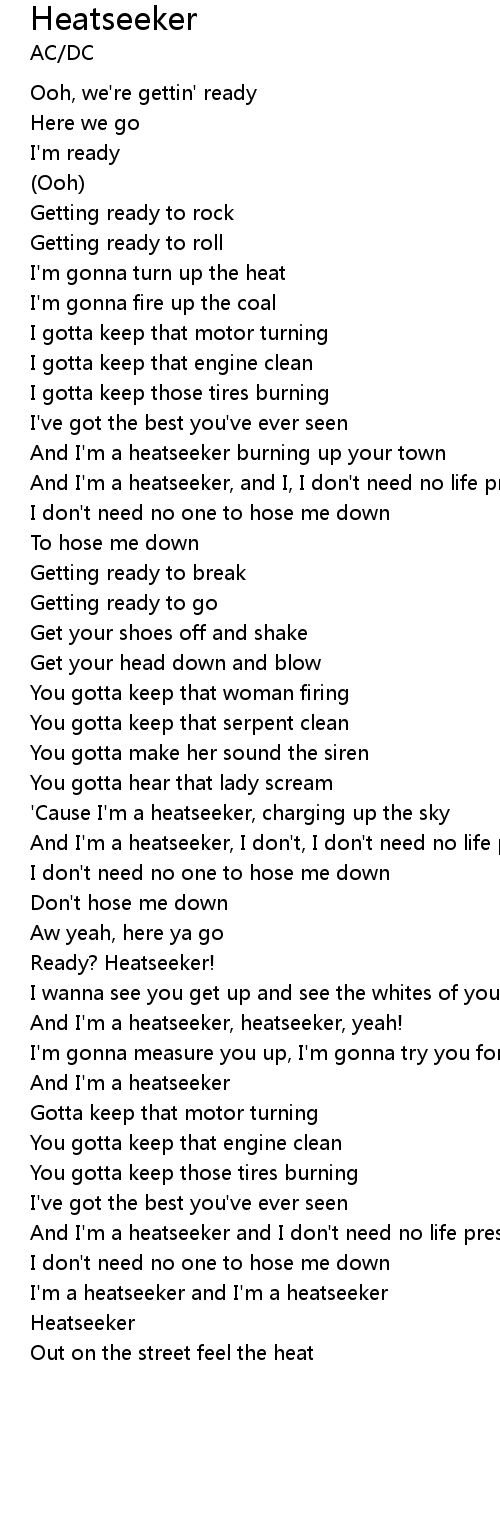 And I'm a heatseeker, and I, I don't need no life preserver |