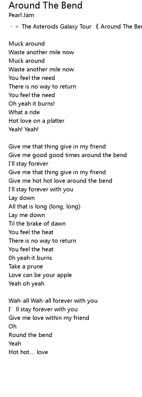 | Give me good good times around the bend | |