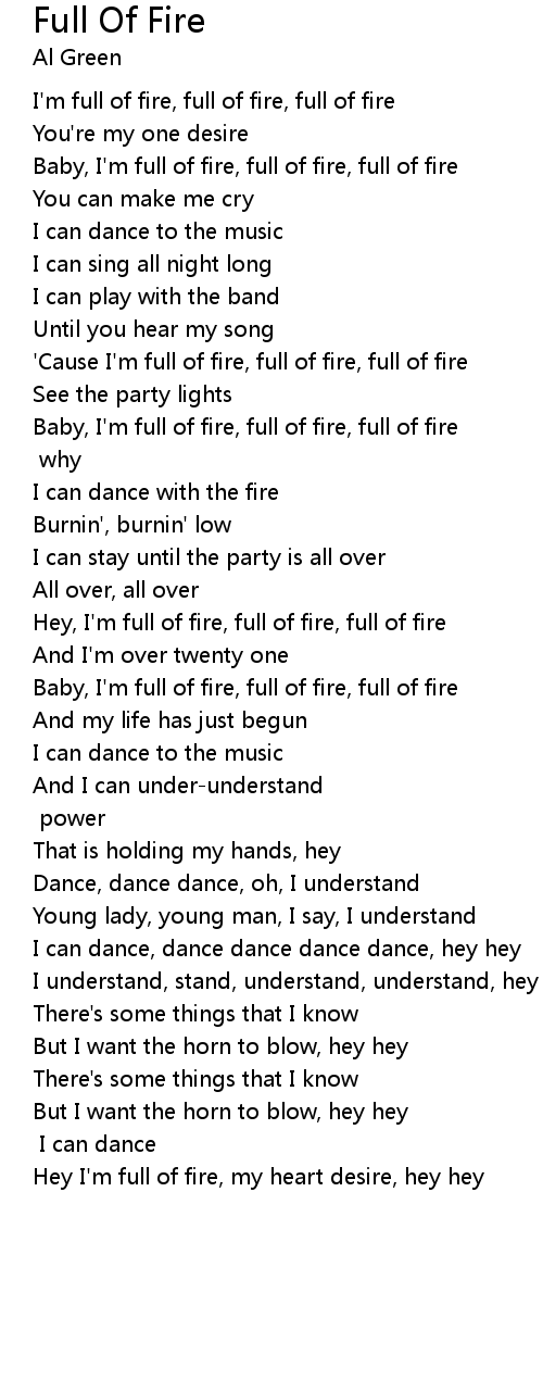 | Hey, I'm full of fire, full of fire, full of fire | |