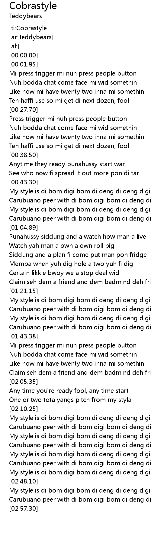 My style is di bom digi bom di deng di deng digigi uu uuu ... |