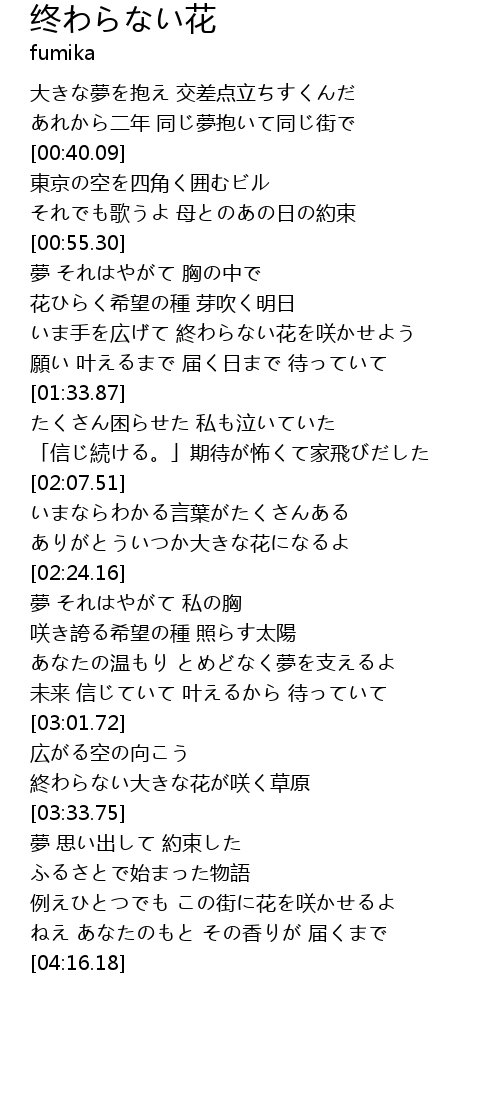 | [02:14.82] | ありがとういつか大きな花になるよ |
