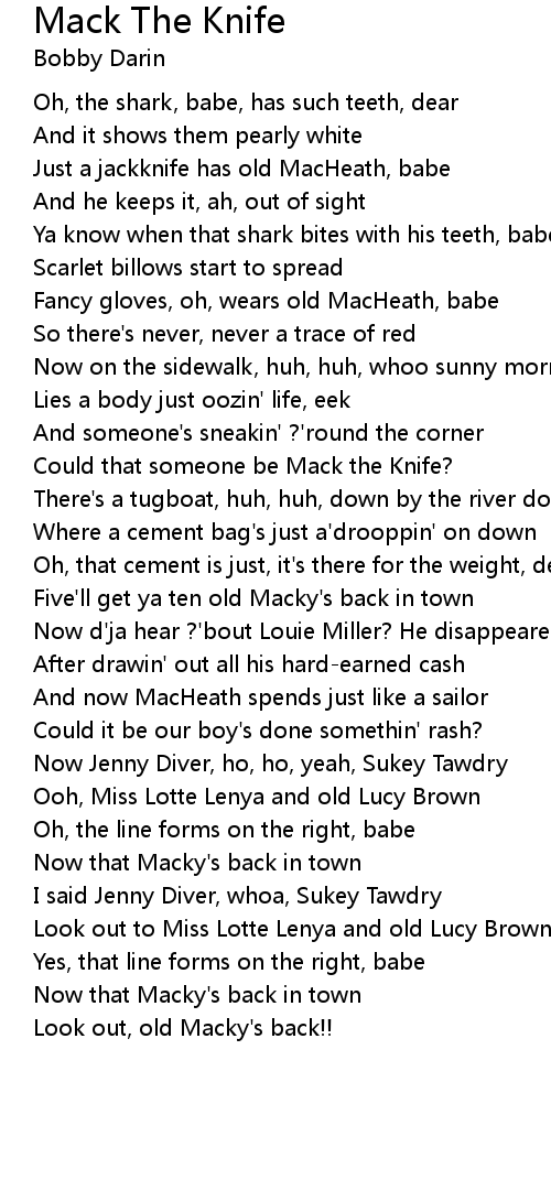 Just a jackknife has old MacHeath, babe |