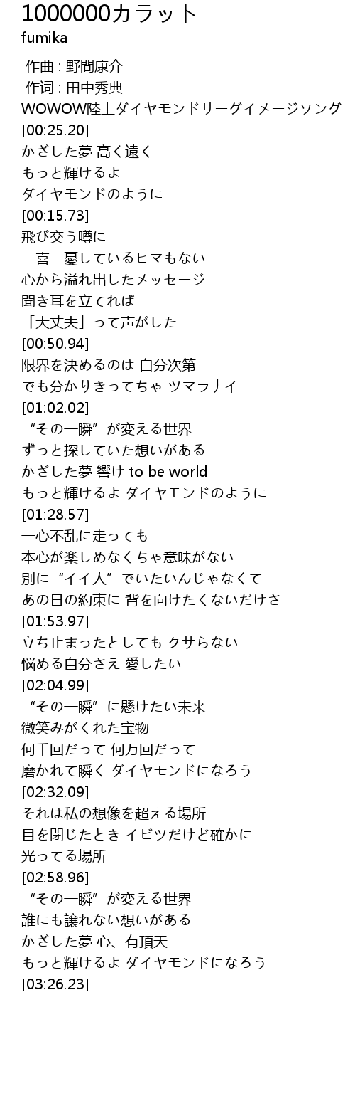 | [00:10.31] | ダイヤモンドのように |