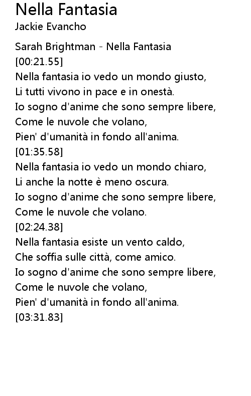 | [00:00.00] | Sarah Brightman Nella Fantasia |