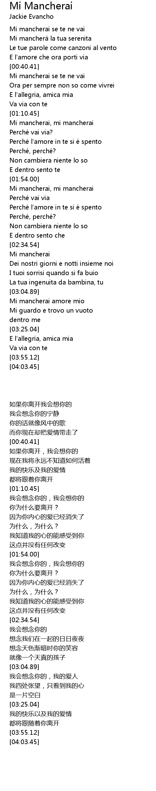 | [02:05.45] | Mi mancherai, mi mancherai |