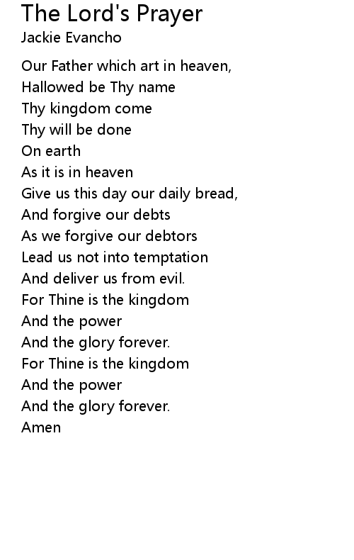 | Song | The Lord's Prayer |