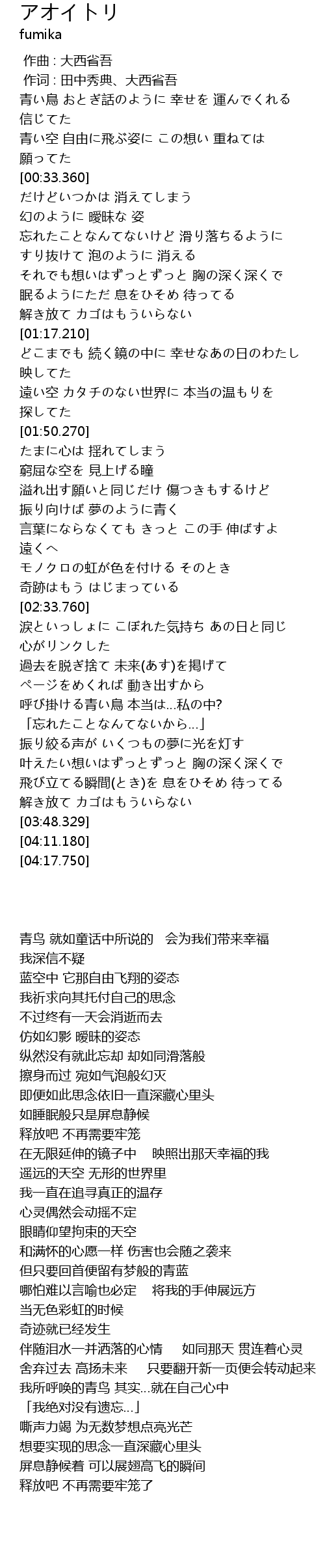 | [03:07.730] | 呼び掛ける青い鳥 本当は…私の中? |