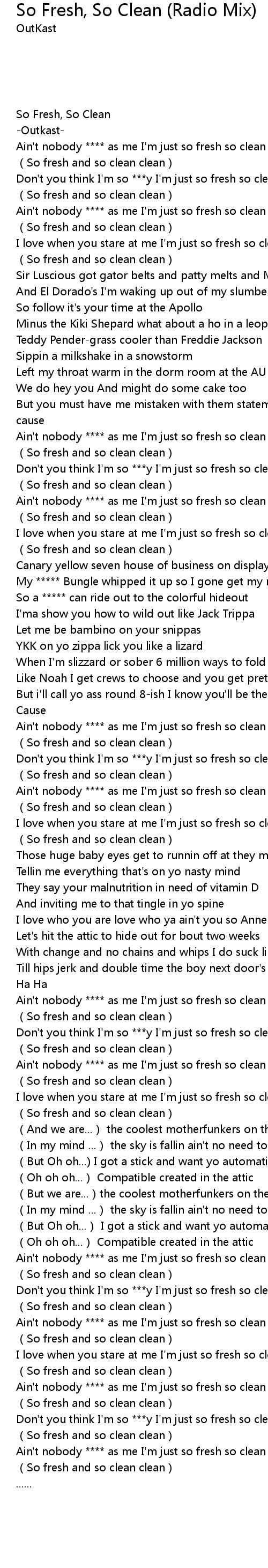 | [02:32.16] | Ain't nobody **** as me I'm just so fresh so clean |