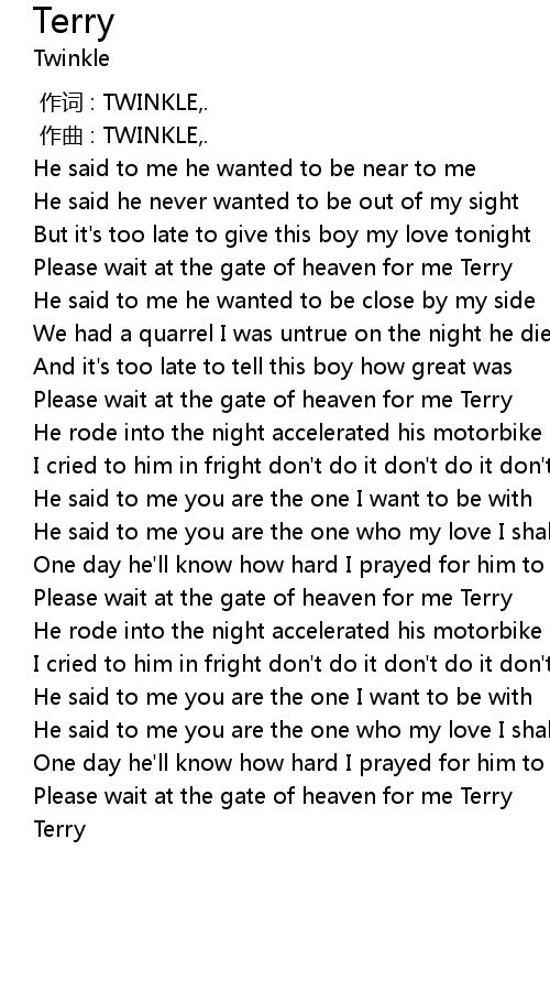 | [00:36.35] | Please wait at the gate of heaven for me Terry |