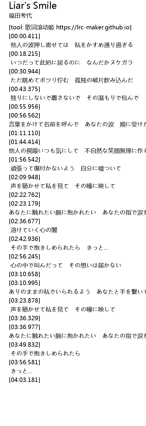 | [01:44.414] | 他人の視線いつも気にして 不自然な笑顔無理に作る |