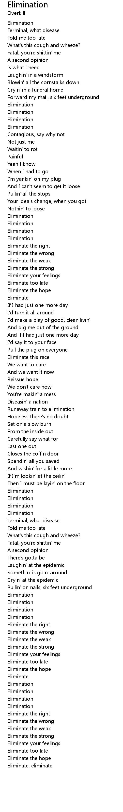 Eliminate, eliminate |