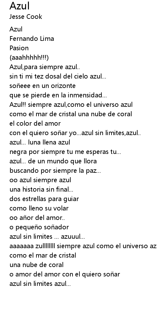 | [01:41.50] | con el quiero so ar yo... azul sin limites, azul.. |