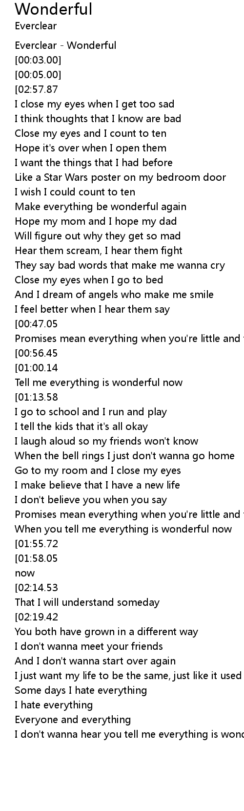 Tell me everything is wonderful now |