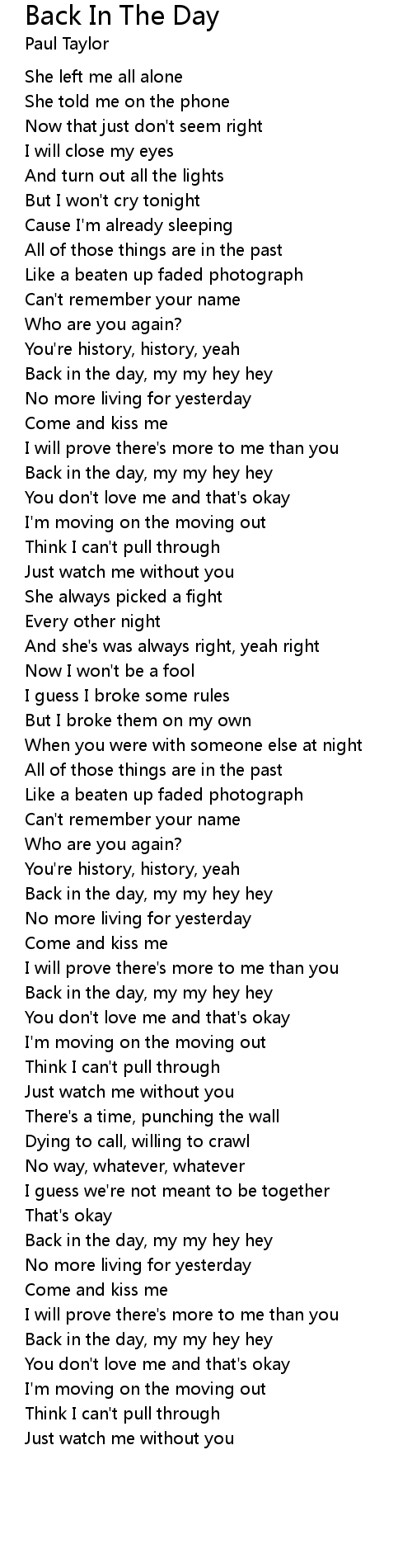 Back in the day, my my hey hey |