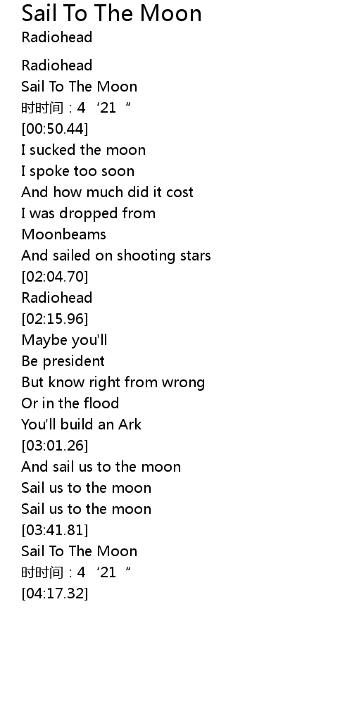 | [00:10.64] | Sail To The Moon |