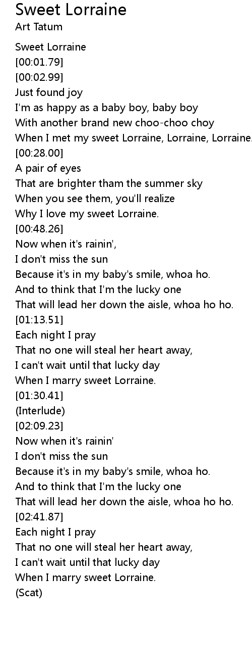 When I met my sweet Lorraine, Lorraine, Lorraine. |
