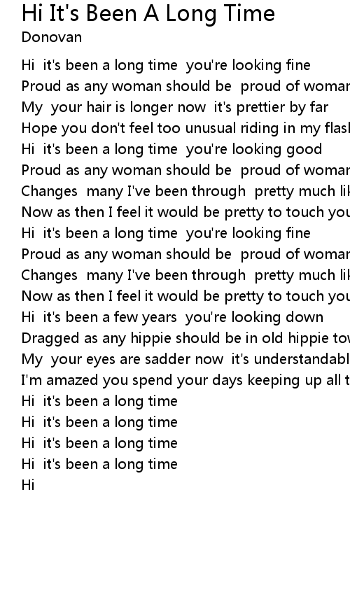 Hi it's been a long time |