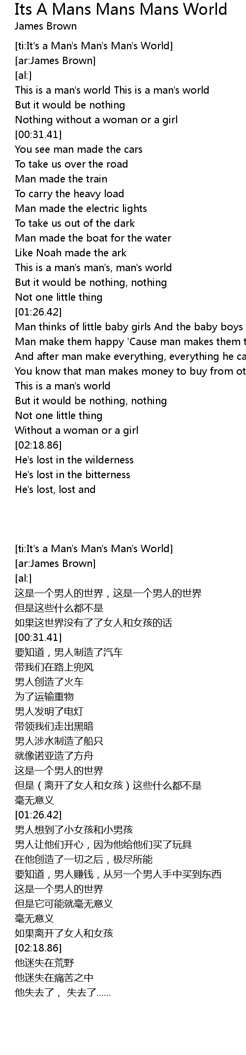 [ti:It's a Man's Man's Man's World]