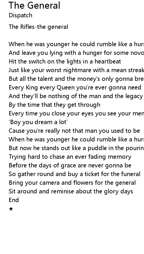 | Song | The General |