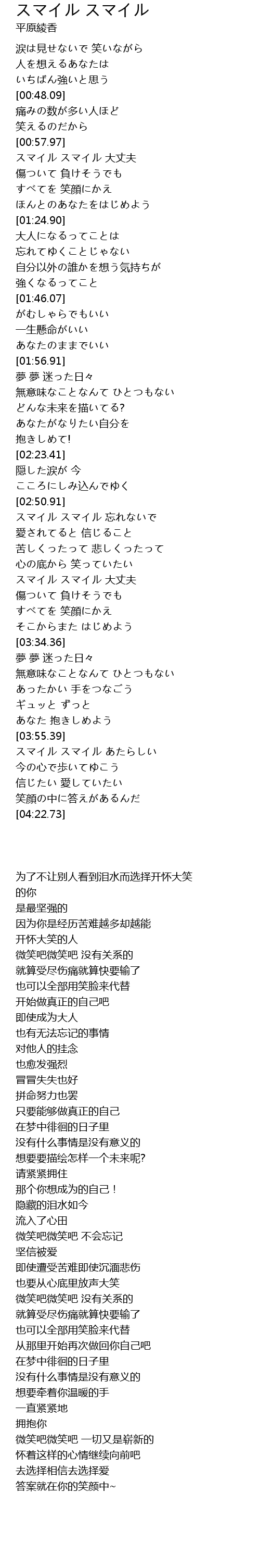 | [00:59.17] | スマイル スマイル 大丈夫 |