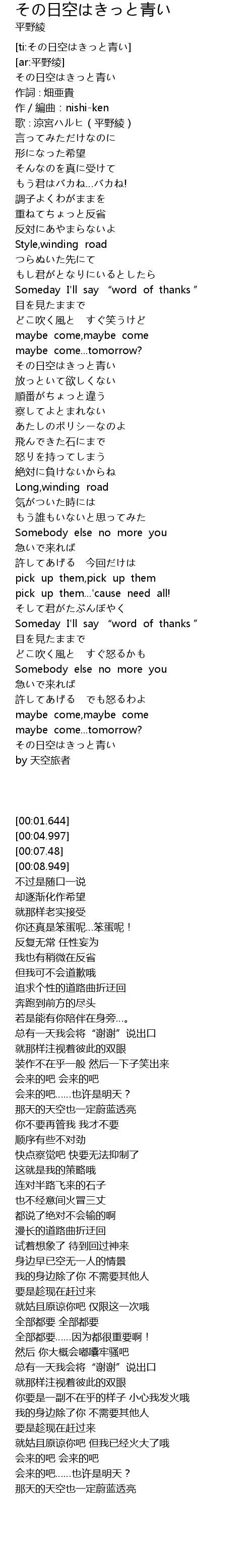 | [00:59.322] | Someday I' ll say " word of thanks " |
