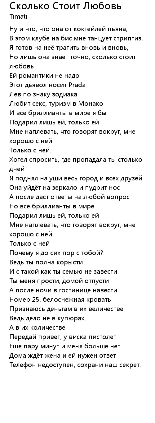 Сколько Стоит Любовь  Lyrics