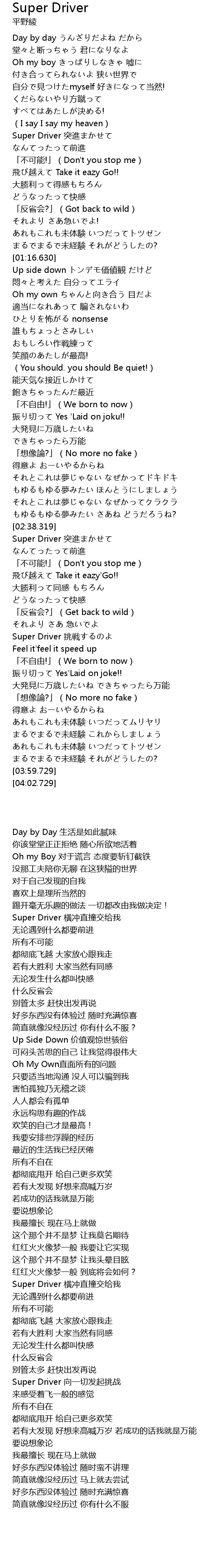 | [03:21.699] | Super Driver tiāo zhàn |