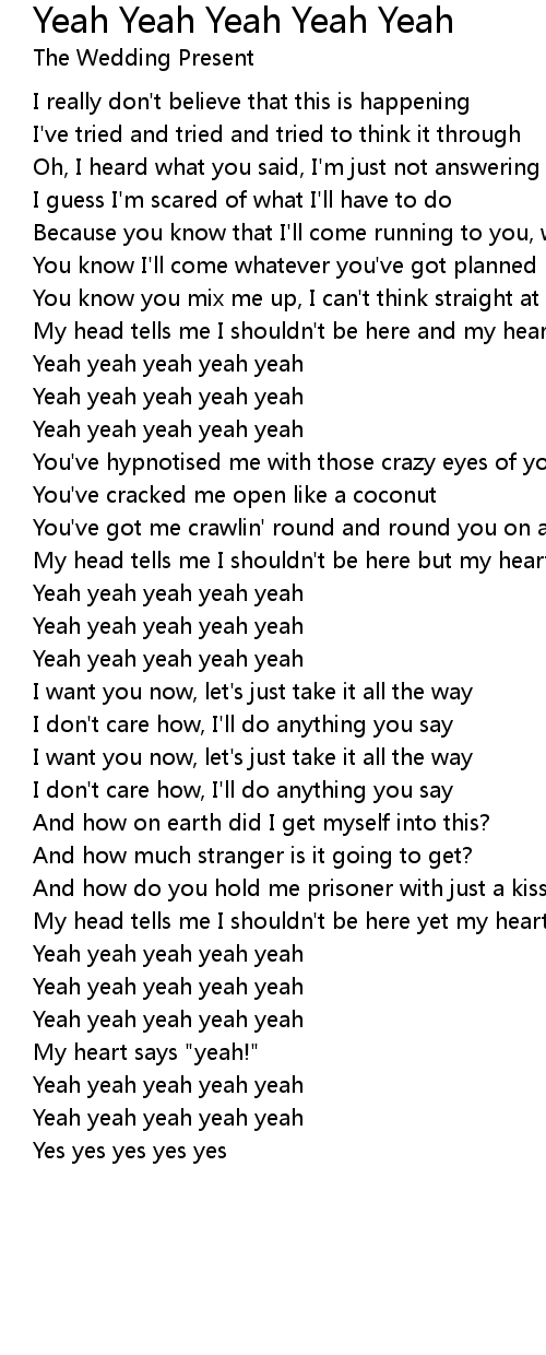 Yeah yeah yeah yeah yeah |