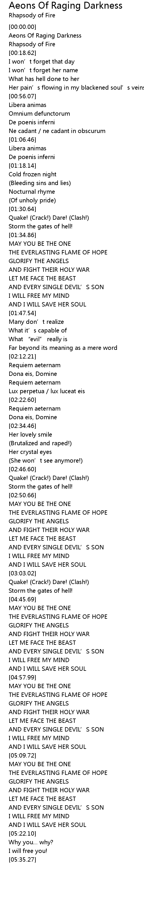 | [04:59.42] | THE EVERLASTING FLAME OF HOPE |