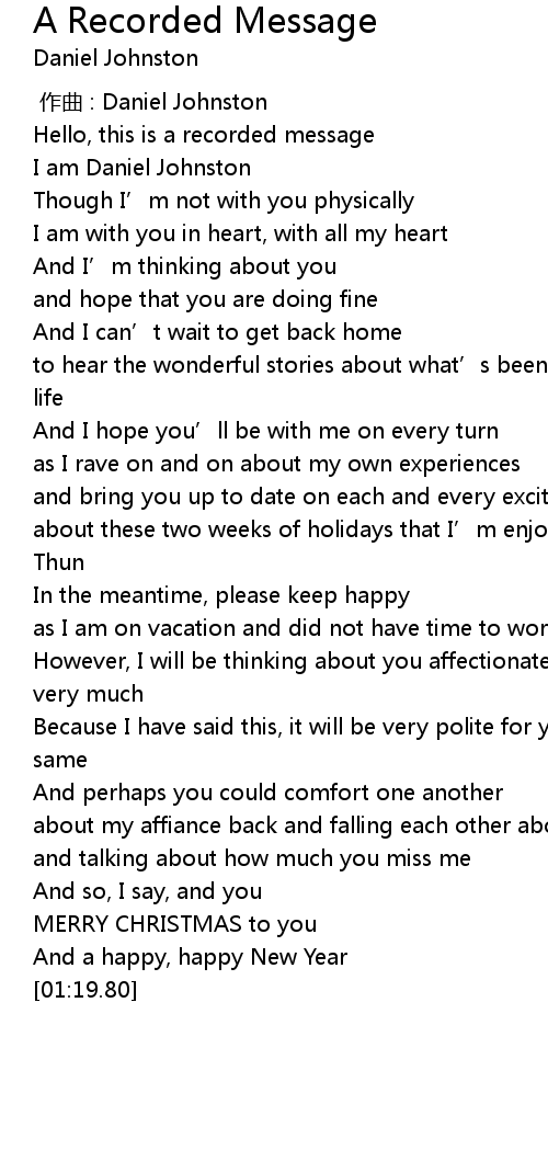 | [00:02.69] | Hello, this is a recorded message |