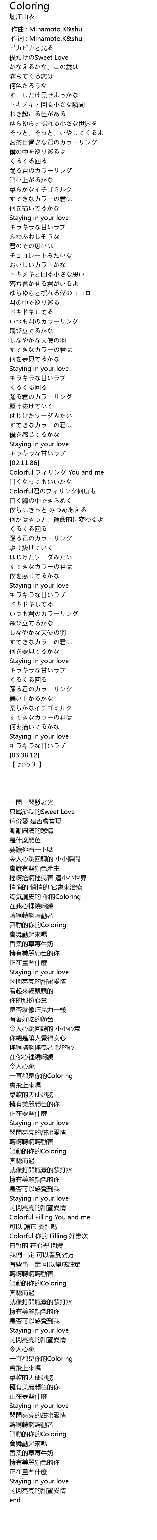| [02:23.71] | Colorful You and me |