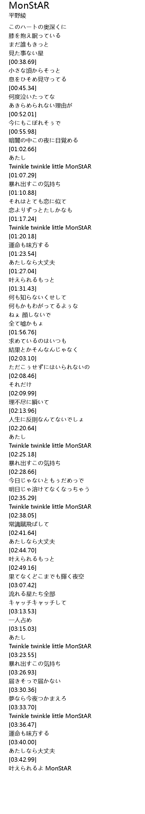 | [03:21.52] | Twinkle twinkle little MonStAR |