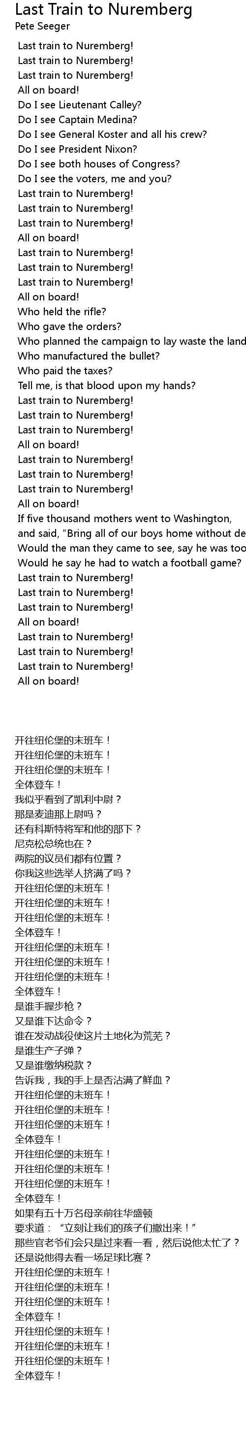 Song Last Train to Nuremberg