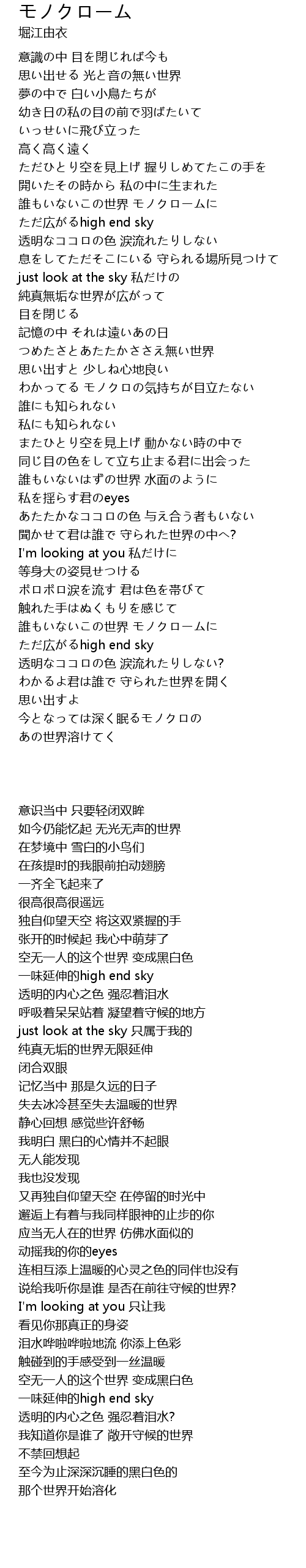 | [01:49.560] | わかってる モノクロの気持ちが目立たない |
