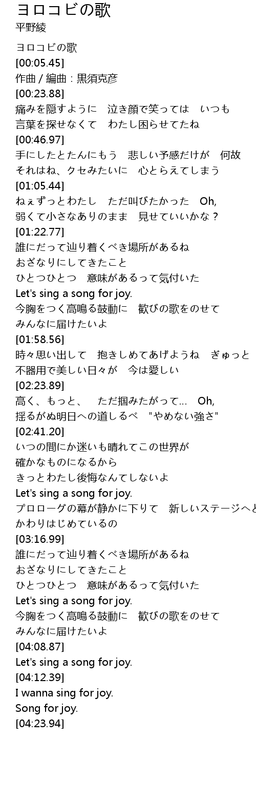 | [00:00.81] | ヨロコビの歌 |