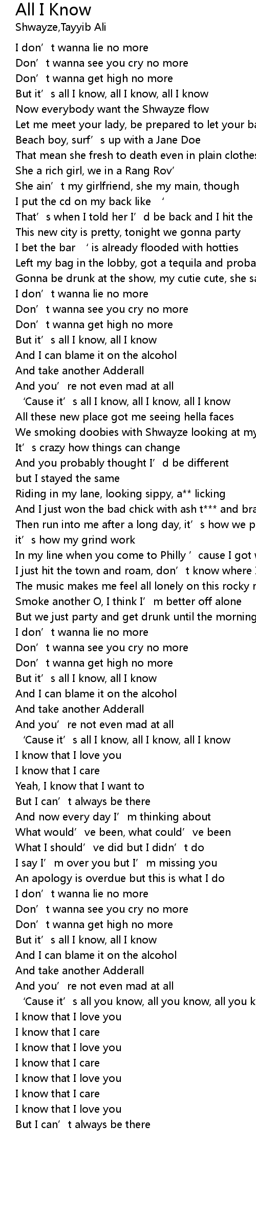 | [02:33.37] | ' Cause it' s all I know, all I know, all I know |