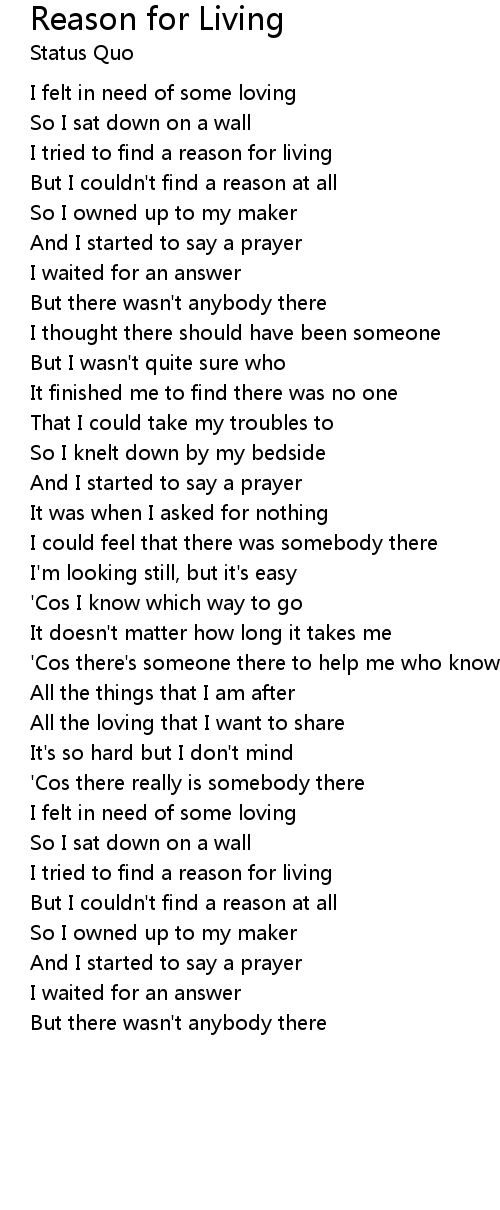 I tried to find a reason for living |