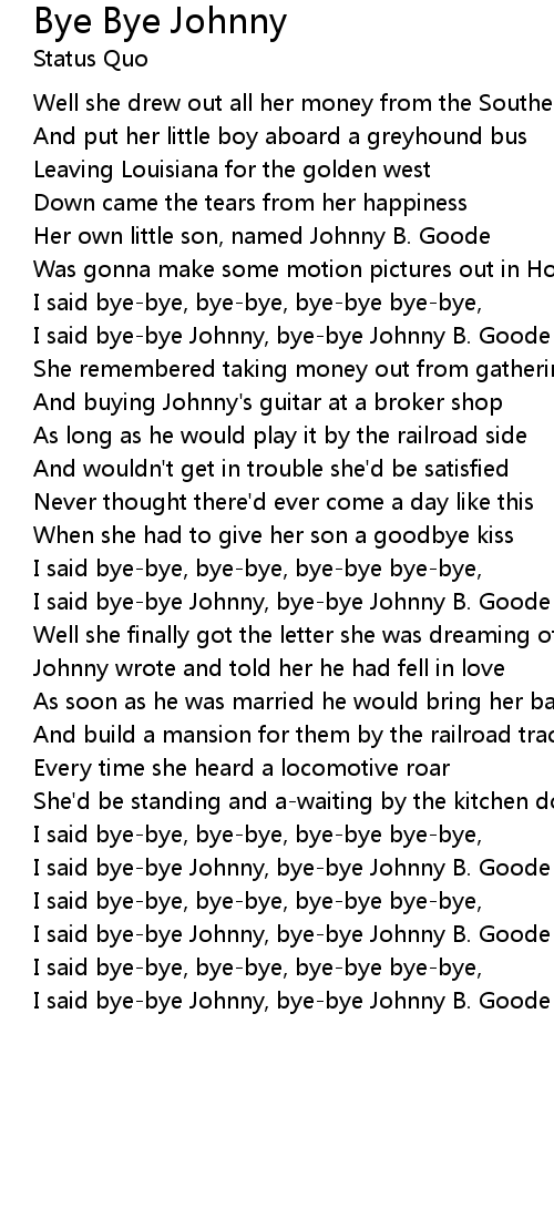 I said bye-bye Johnny, bye-bye Johnny B. Goode |