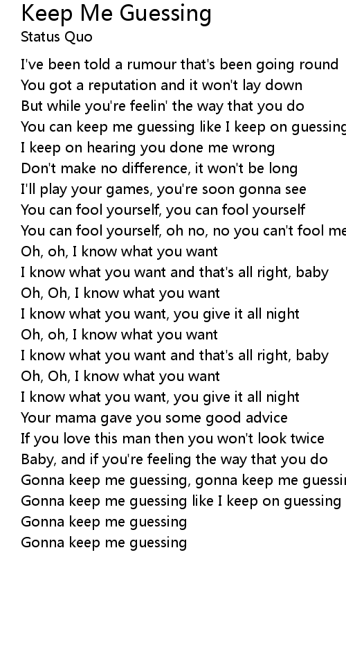 Gonna keep me guessing |