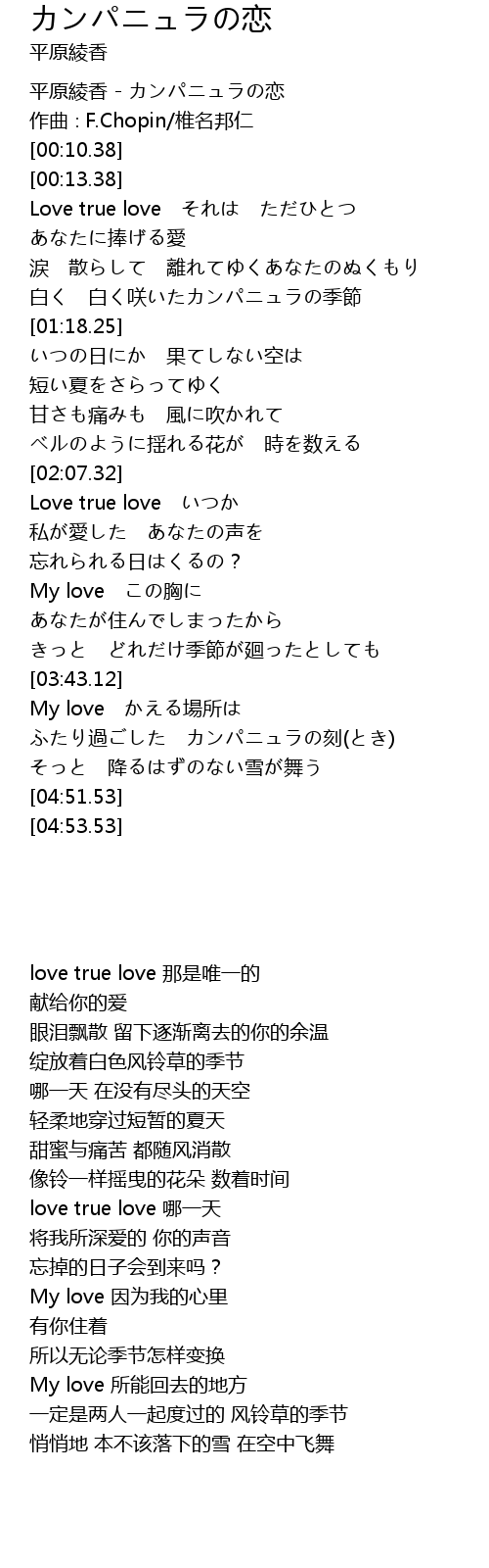 | [00:01.38] | 平原綾香 - カンパニュラの恋 |