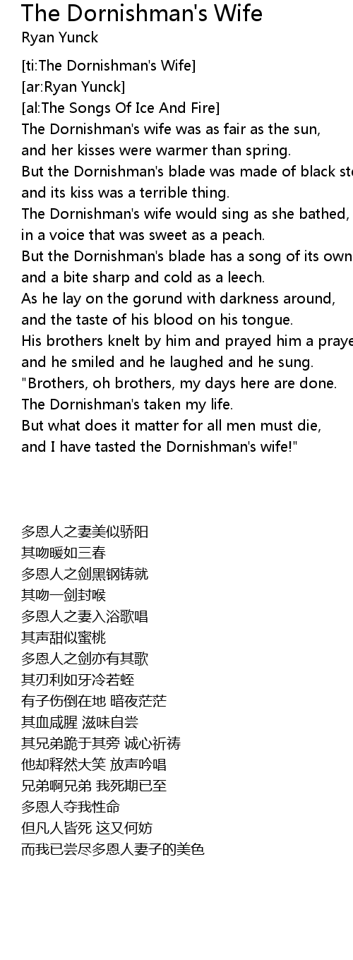 [ti:The Dornishman's Wife] |