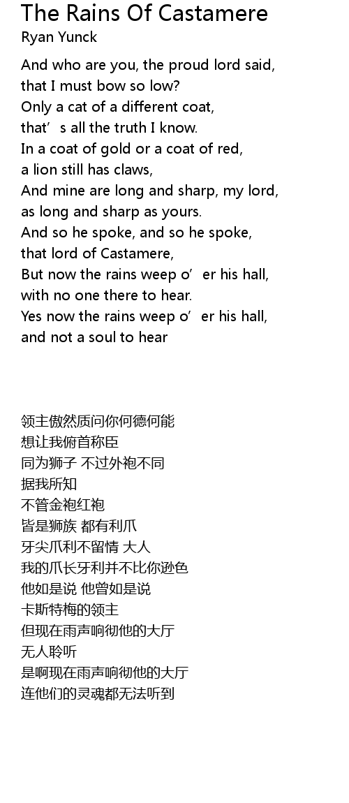 | [01:15.02] | Yes now the rains weep o’er his hall, |
