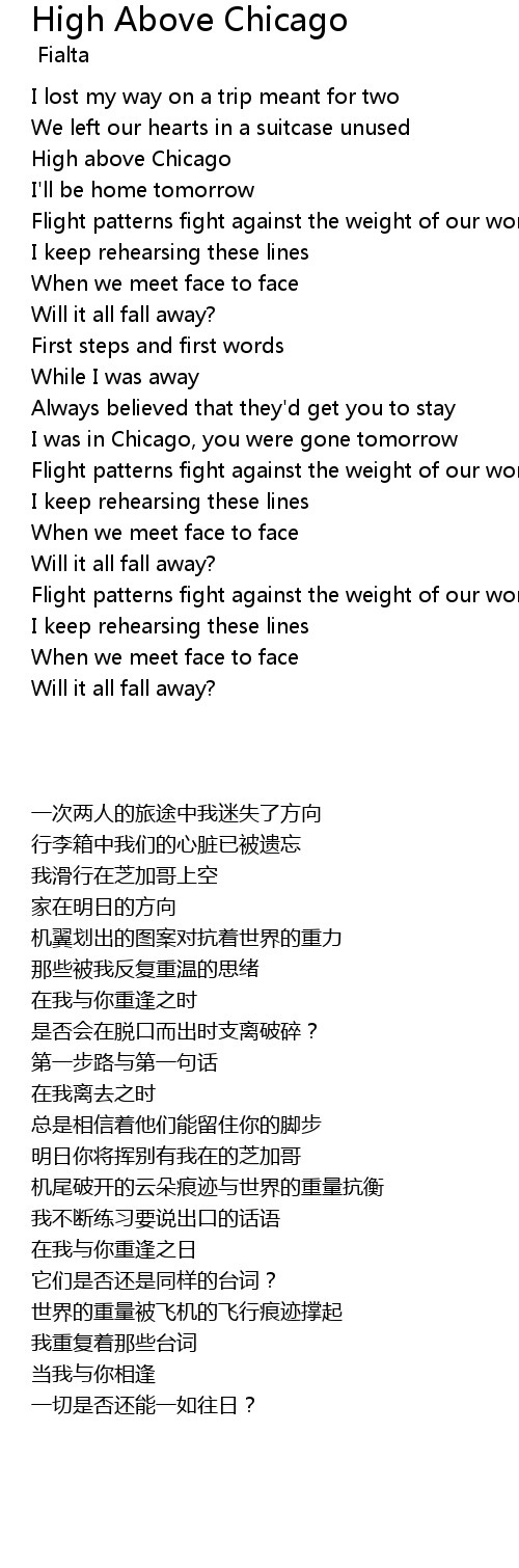 I was in Chicago, you were gone tomorrow |