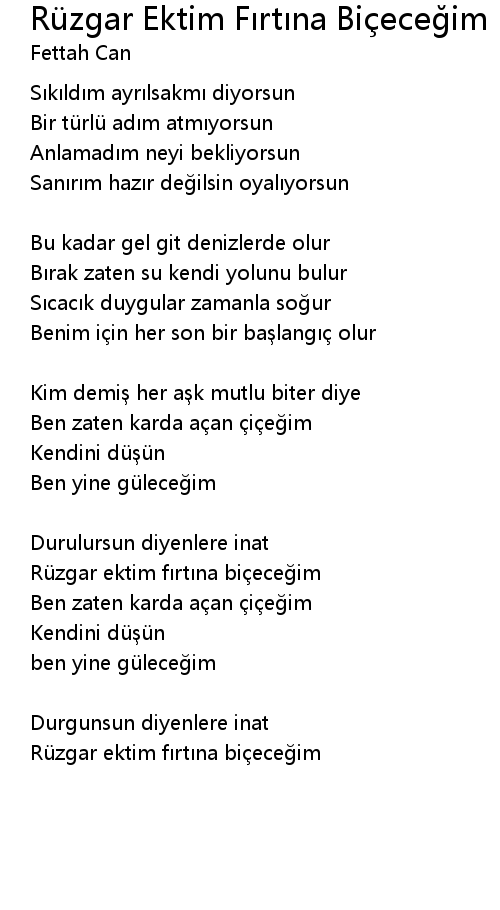 | Song | Rüzgar Ektim Fırtına Biçeceğim |
