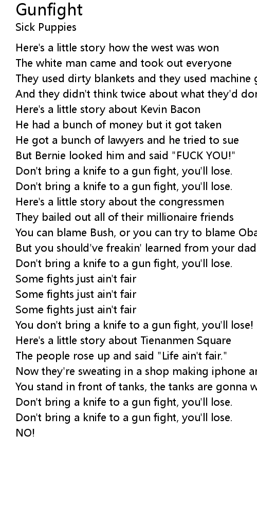 You don't bring a knife to a gun fight, you'll lose! |